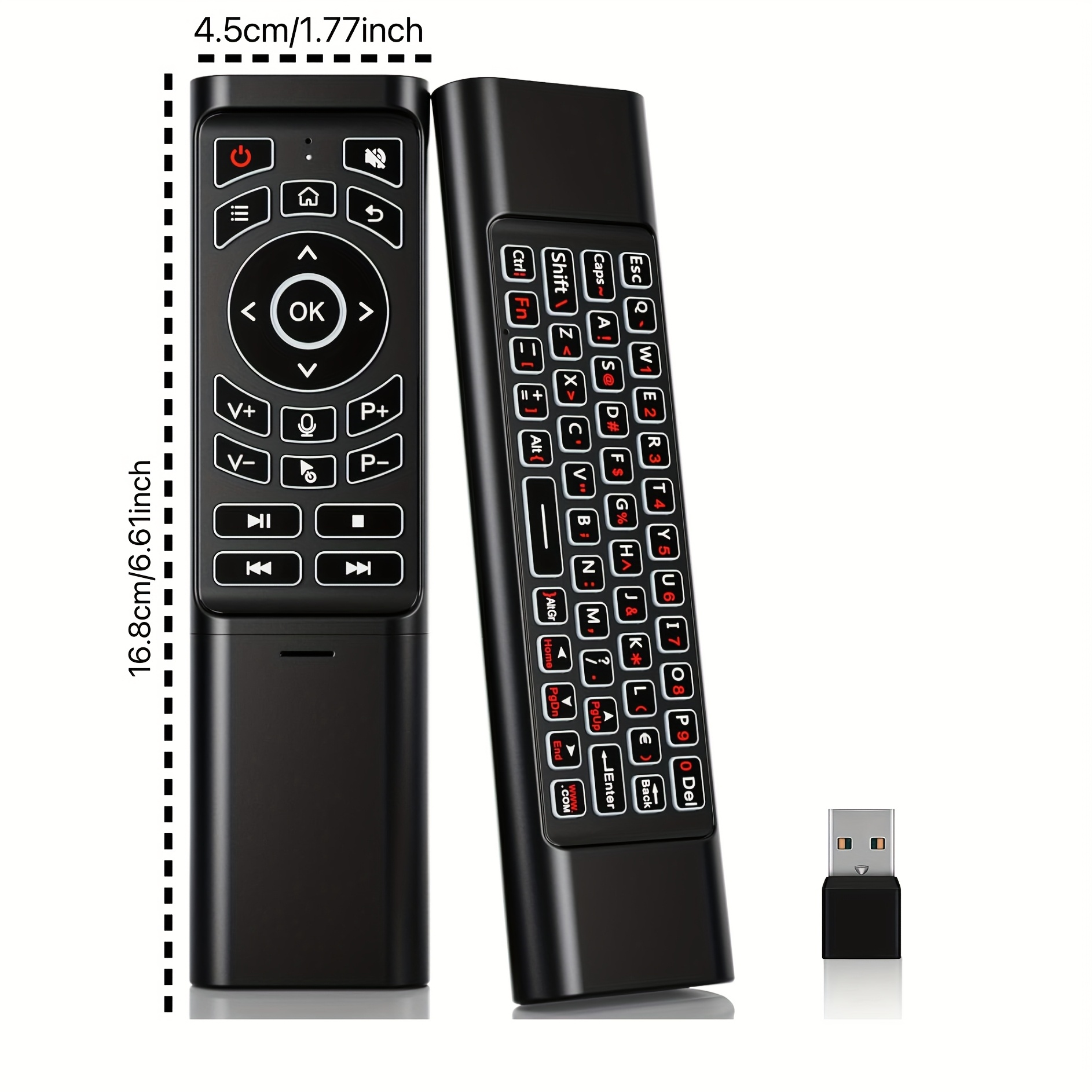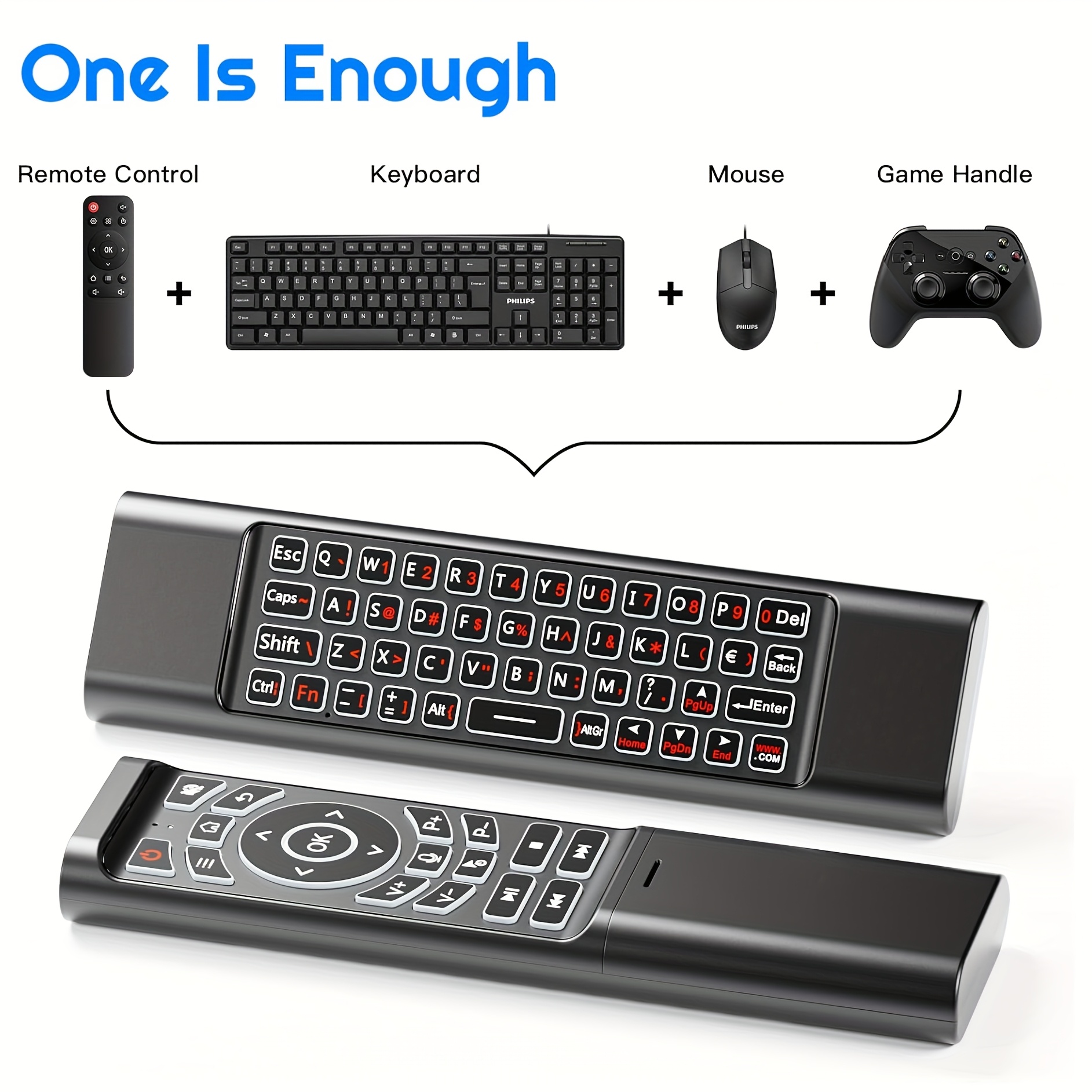 - جهاز تحكم 2 في 1: استمتع بالتحكم المزدوج بلمسة زر! يعمل كـ ماوس هوائي دقيق وسريع، وكـ لوحة مفاتيح كاملة لتسهيل البحث والكتابة، كل ذلك في جهاز واحد يوفر لك الوقت والمساحة.