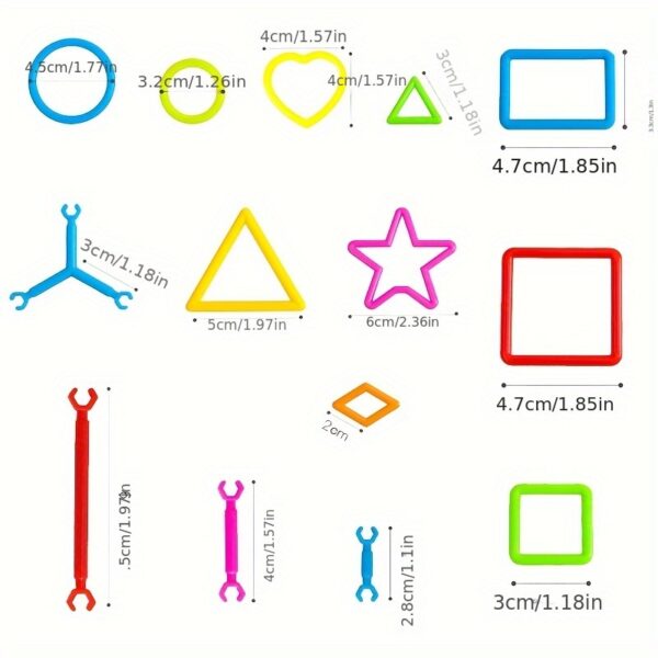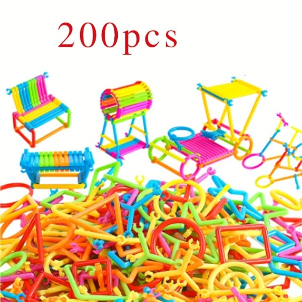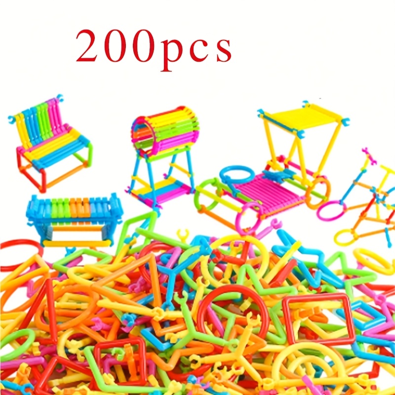 • ألوان وأشكال متنوعة: 200 قطعة بألوان زاهية وأشكال هندسية مختلفة تُحفز الإبداع البصري وتُمكن الأطفال من بناء هياكل فريدة ومتنوعة بلا حدود.