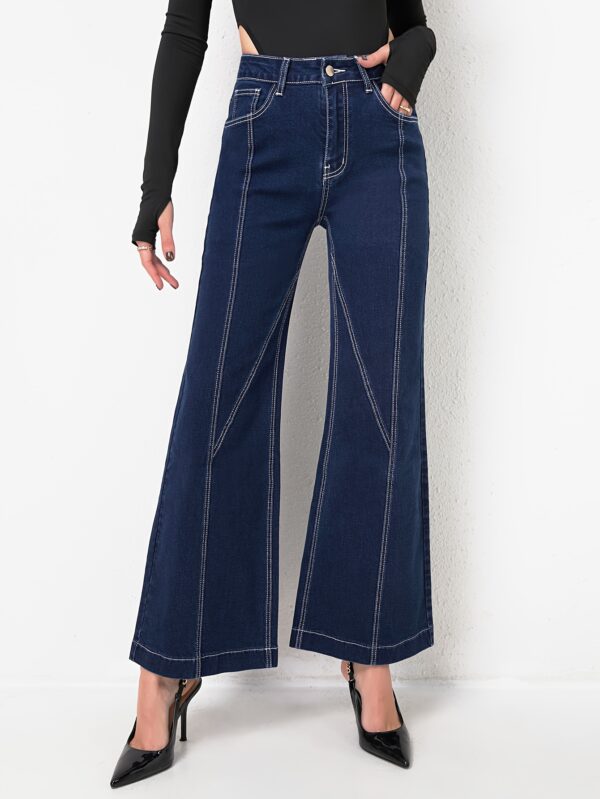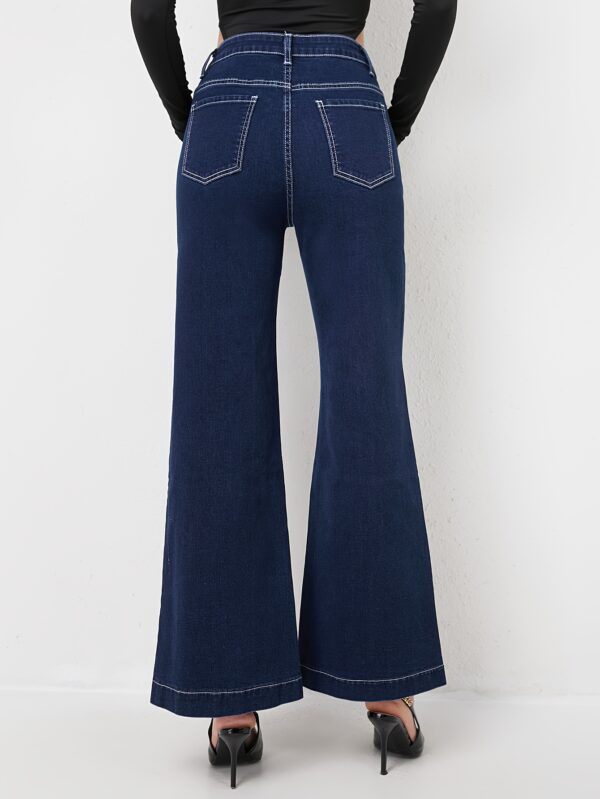 استعدي للتألق: بنطلون جينز نسائي بقَصّة واسعة، خصر عالٍ، وتصميم رقعات فريد