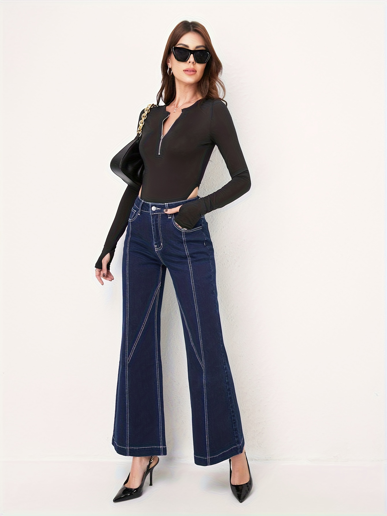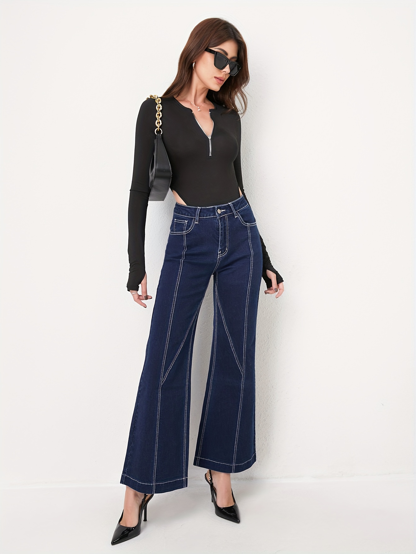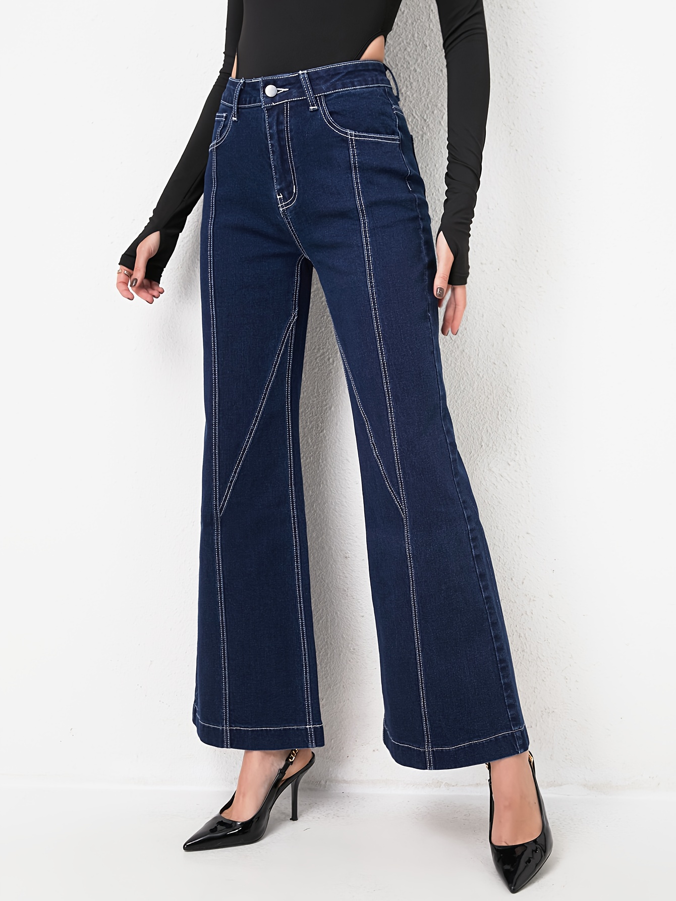 استعدي للتألق: بنطلون جينز نسائي بقَصّة واسعة، خصر عالٍ، وتصميم رقعات فريد