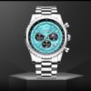 • وظائف متعددة: لا تقتصر على عرض الوقت، بل تتضمن كرونوغراف دقيق، عرض للتاريخ، ووظيفة التوقيت العالمي لتبقى متزامناً أينما كنت.
