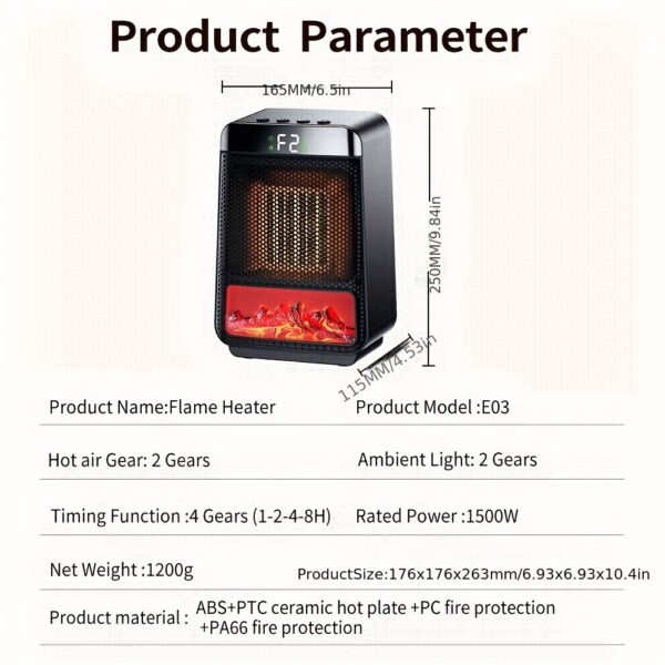 - تشغيل هادئ ومناسب للاستخدام اليومي: استمتع بدفء مريح دون أي إزعاج. تم تصميم المدفأة لتعمل بكفاءة عالية وبهدوء، مما يجعلها مثالية للاستخدام أثناء العمل، النوم، أو الاسترخاء.