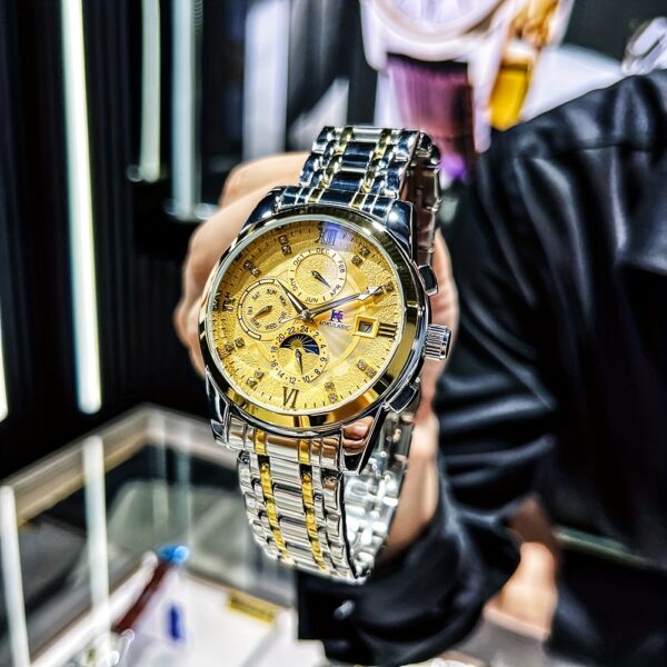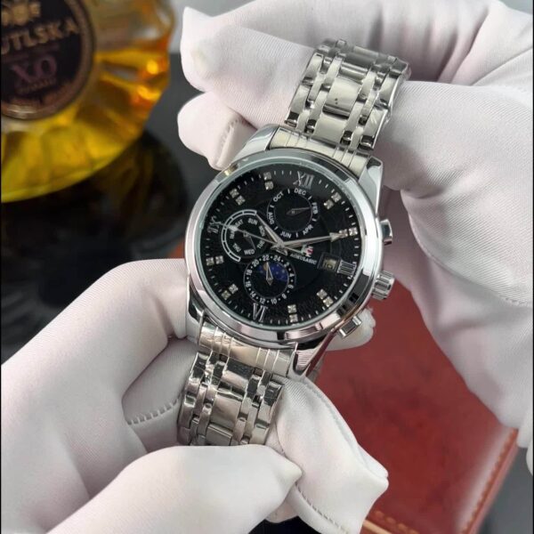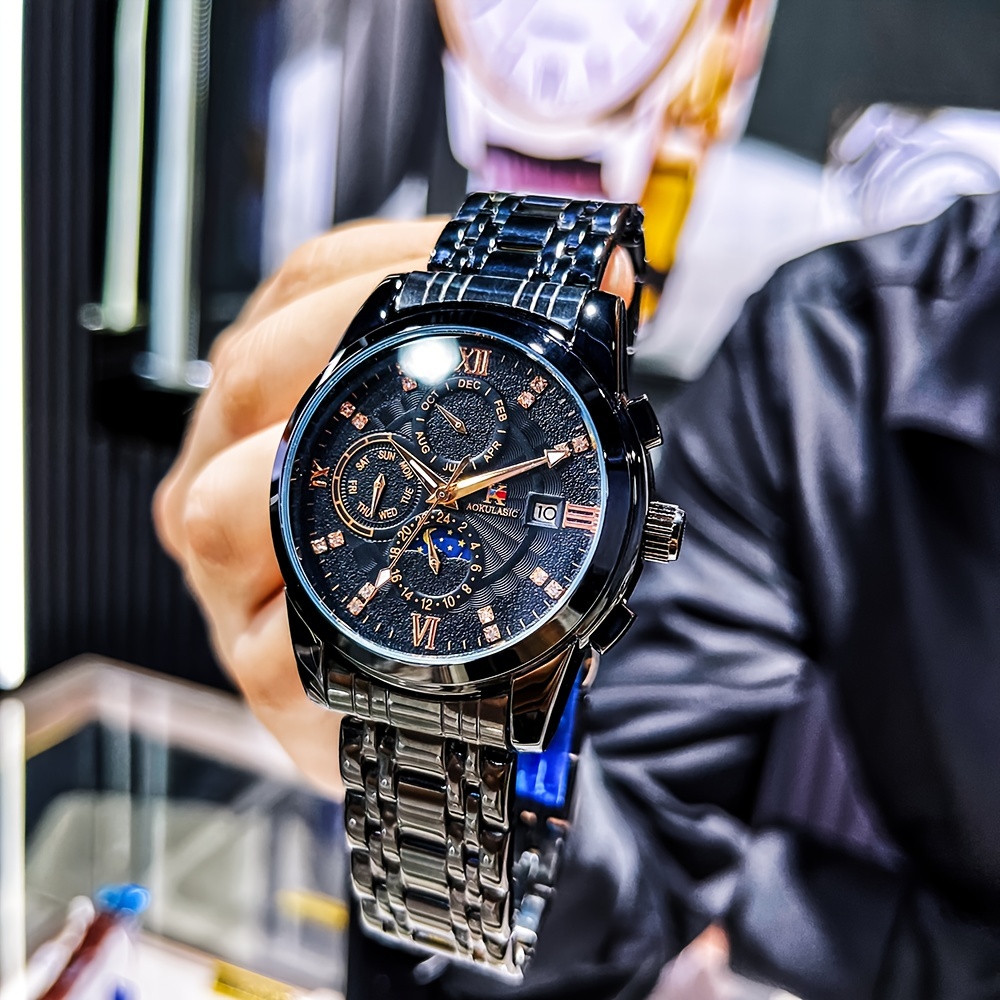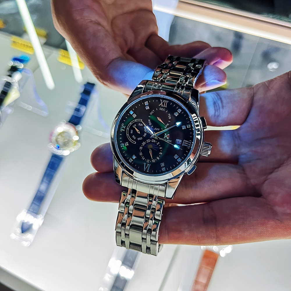 ارتقِ بمظهرك واستعرض ذوقك الرفيع مع ساعة اليد الميكانيكية الأوتوماتيكية بالكامل، المصممة خصيصًا للرجل الذي يقدّر الفخامة، الدقة، والأداء الاستثنائي. إنها ليست مجرد أداة لمعرفة الوقت، بل هي تعبير عن الهيبة، لمسة نهائية مثالية لإطلالتك في العمل أو المناسبات الرسمية، ومكمل لا غنى عنه لأناقتك العصرية.