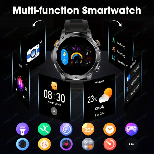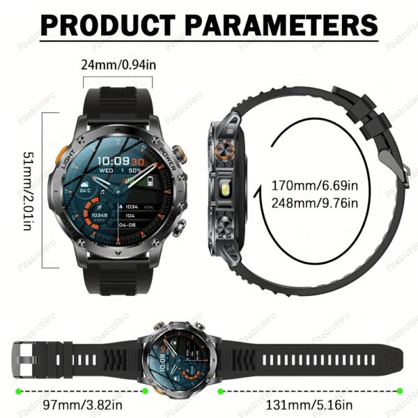 - مساعد صوتي ذكي ومصباح يدوي عملي: تحكّم بساعتك وأنجز مهامك اليومية بكل سهولة وذكاء عبر الأوامر الصوتية. ولا تقلق في الظلام، فميزة المصباح اليدوي المدمج ستوفر لك الإضاءة الفورية والعملية متى احتجت إليها.