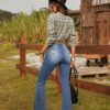 - قصة أرجل واسعة (Flare Leg) مريحة: تصميم كلاسيكي يعود بقوة، يمنحك حرية الحركة الكاملة ويبرز جمال قوامك بشكل أنيق ومريح، مثالي لإطلالاتك اليومية أو المسائية.