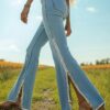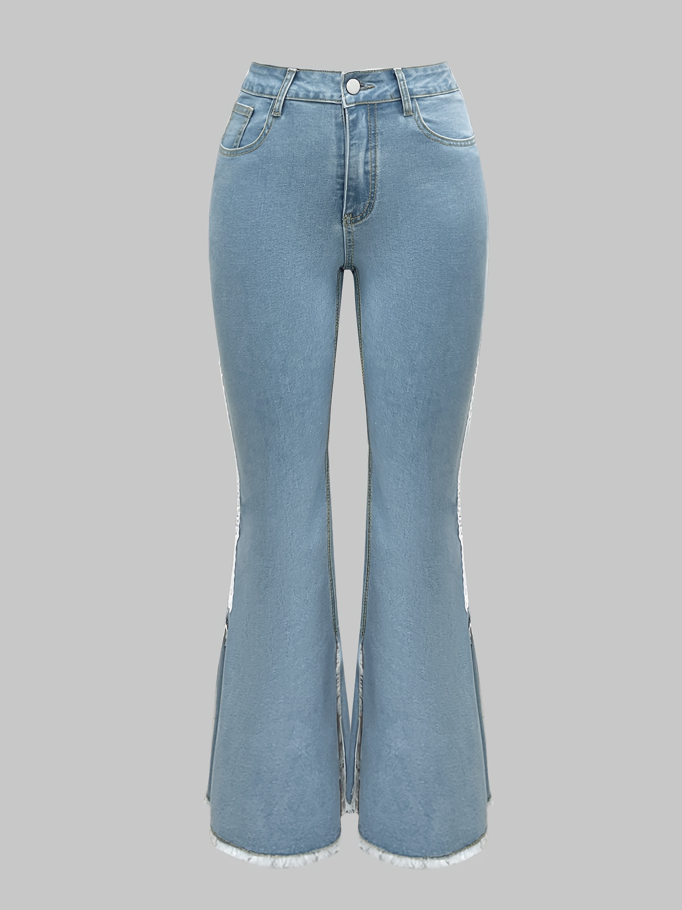 جينز دنيم نسائي بقصة مستقيمة عصرية – حواف خام جريئة، مطاطي ومريح بلمسة فينتاج أنيقة