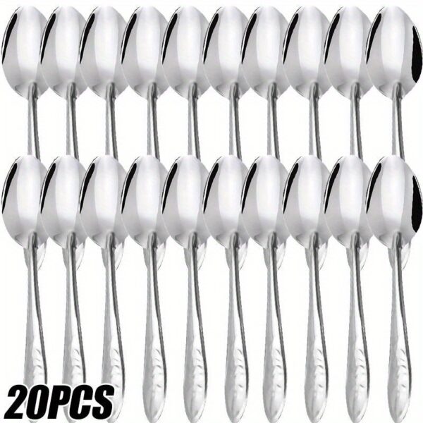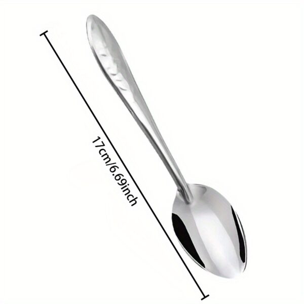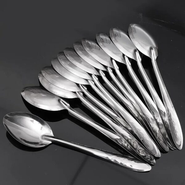 - جودة لا تضاهى: صُنعت الملاعق من الفولاذ المقاوم للصدأ عالي الجودة (410)، مما يضمن متانة فائقة، مقاومة للصدأ والتآكل، ويحافظ على لمعانها الفضي الجذاب لفترة طويلة. استمتع بأداء يدوم وجمال لا يتلاشى مع كل استخدام.
