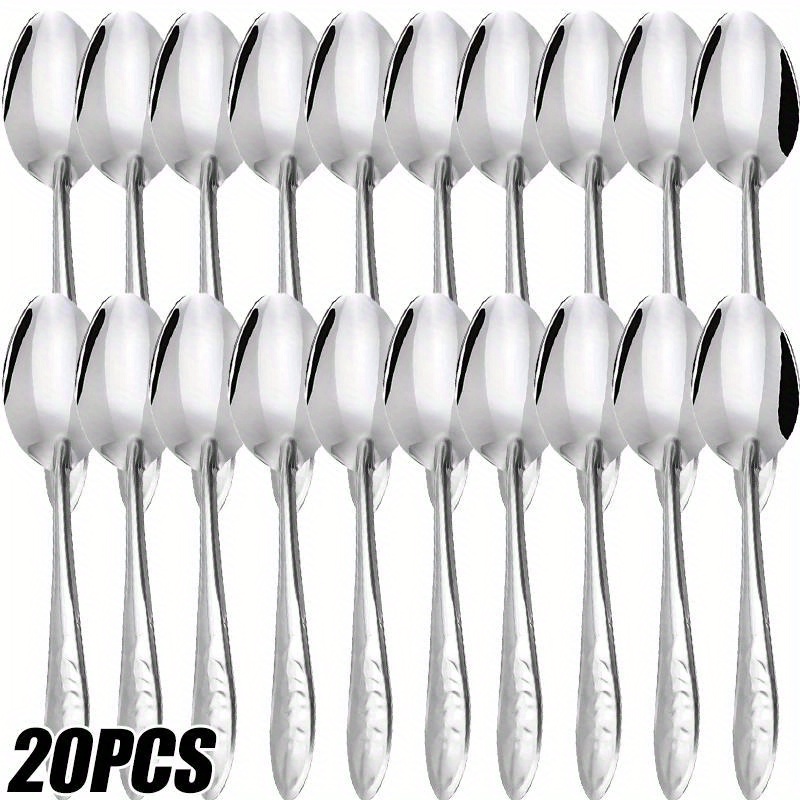 - جودة لا تضاهى: صُنعت الملاعق من الفولاذ المقاوم للصدأ عالي الجودة (410)، مما يضمن متانة فائقة، مقاومة للصدأ والتآكل، ويحافظ على لمعانها الفضي الجذاب لفترة طويلة. استمتع بأداء يدوم وجمال لا يتلاشى مع كل استخدام.