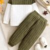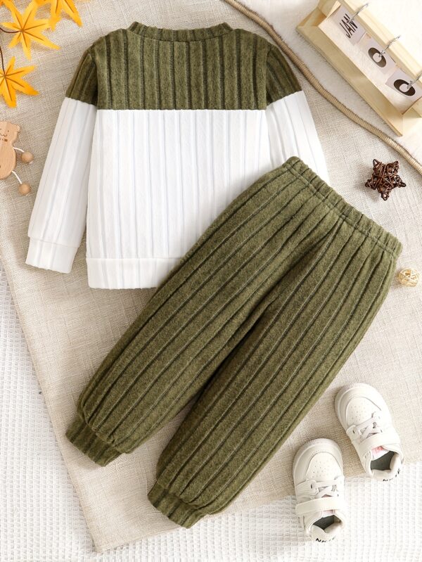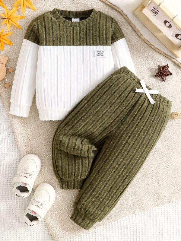- تصميم عصري وجذاب: يتميز بتصميم أنيق بنمط تجميع الألوان (Color-Block) مع بلوزة صوفية دافئة بقبة دائرية وبنطال جوغر مريح. مزيج فريد يضمن لصغيرك إطلالة عصرية ومميزة تلفت الأنظار.