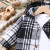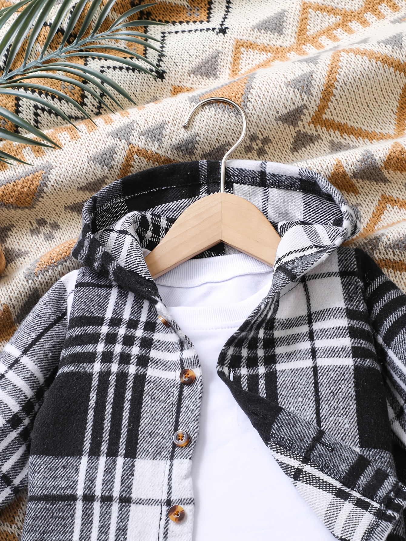 - تصميم عصري وجذاب: يتميز بنمط الكاروهات الكلاسيكي العصري مع قلنسوة عملية وأكمام طويلة، ليمنح طفلك إطلالة أنيقة ومرحة في آن واحد، ومثالي للارتداء كطقم متناسق يكمل بعضه البعض.
