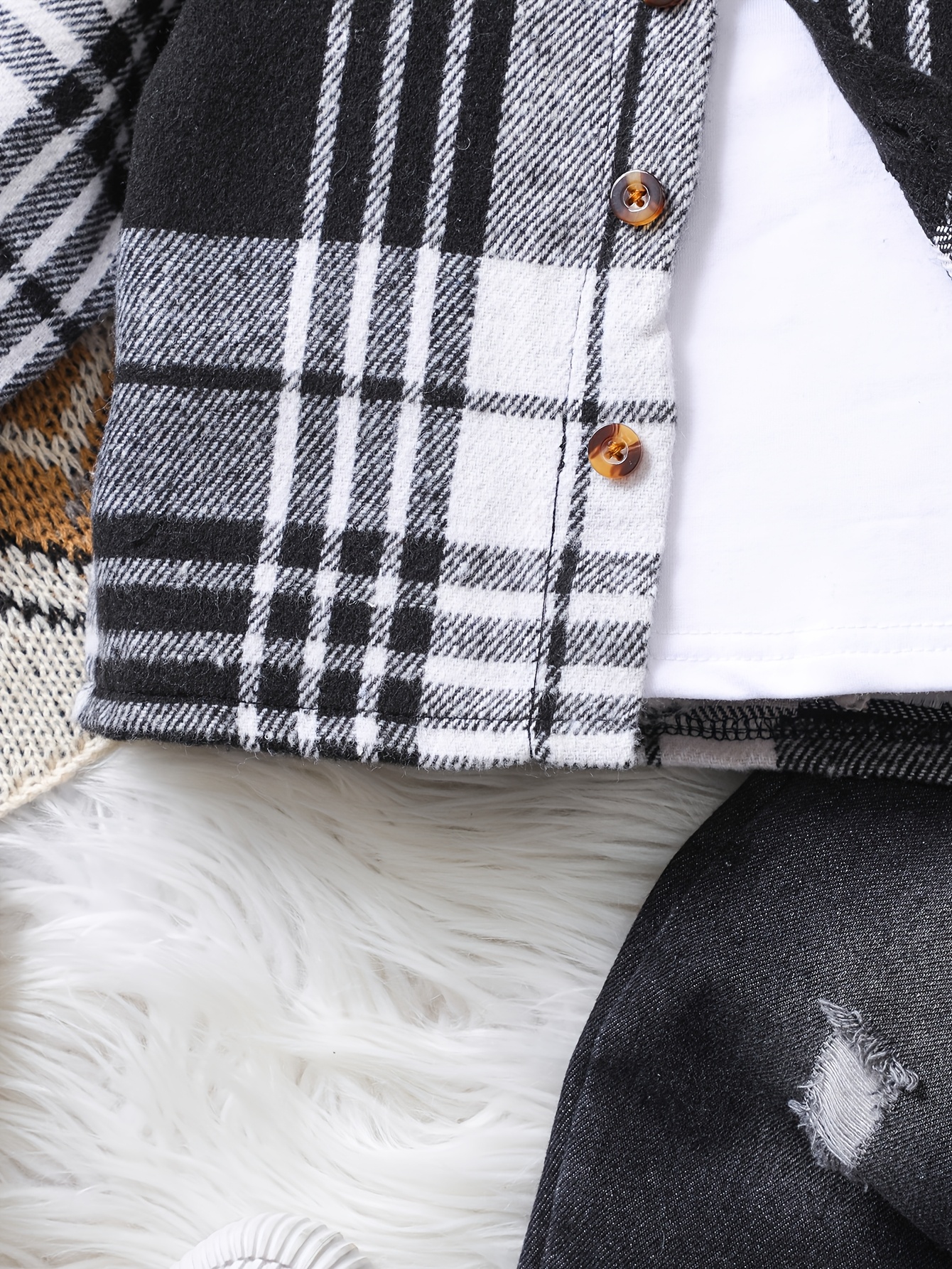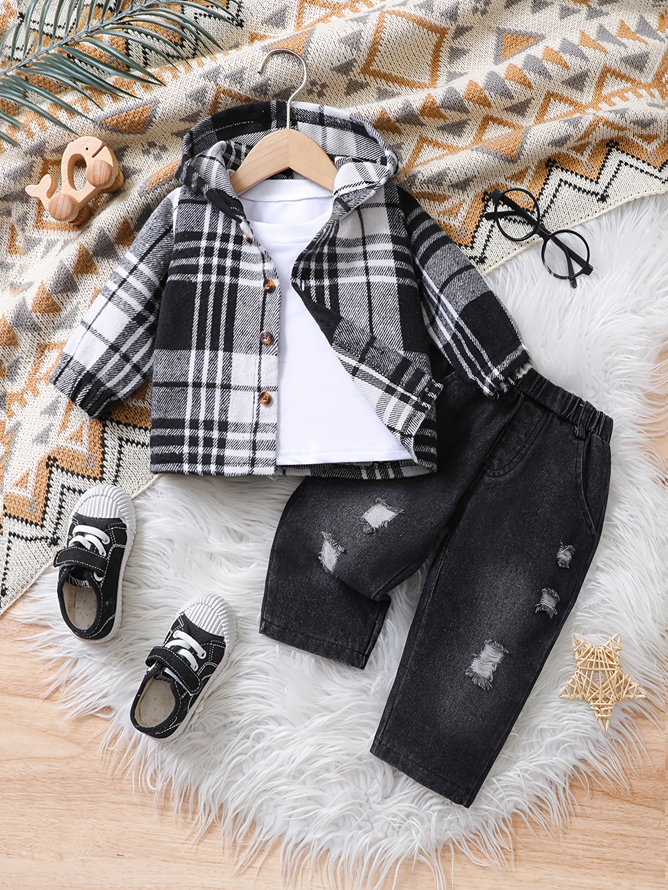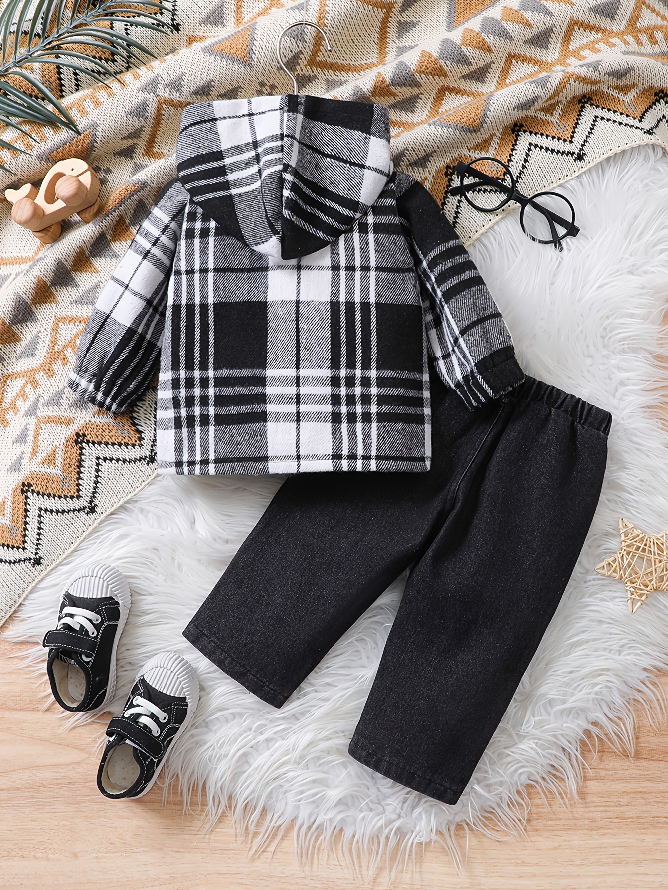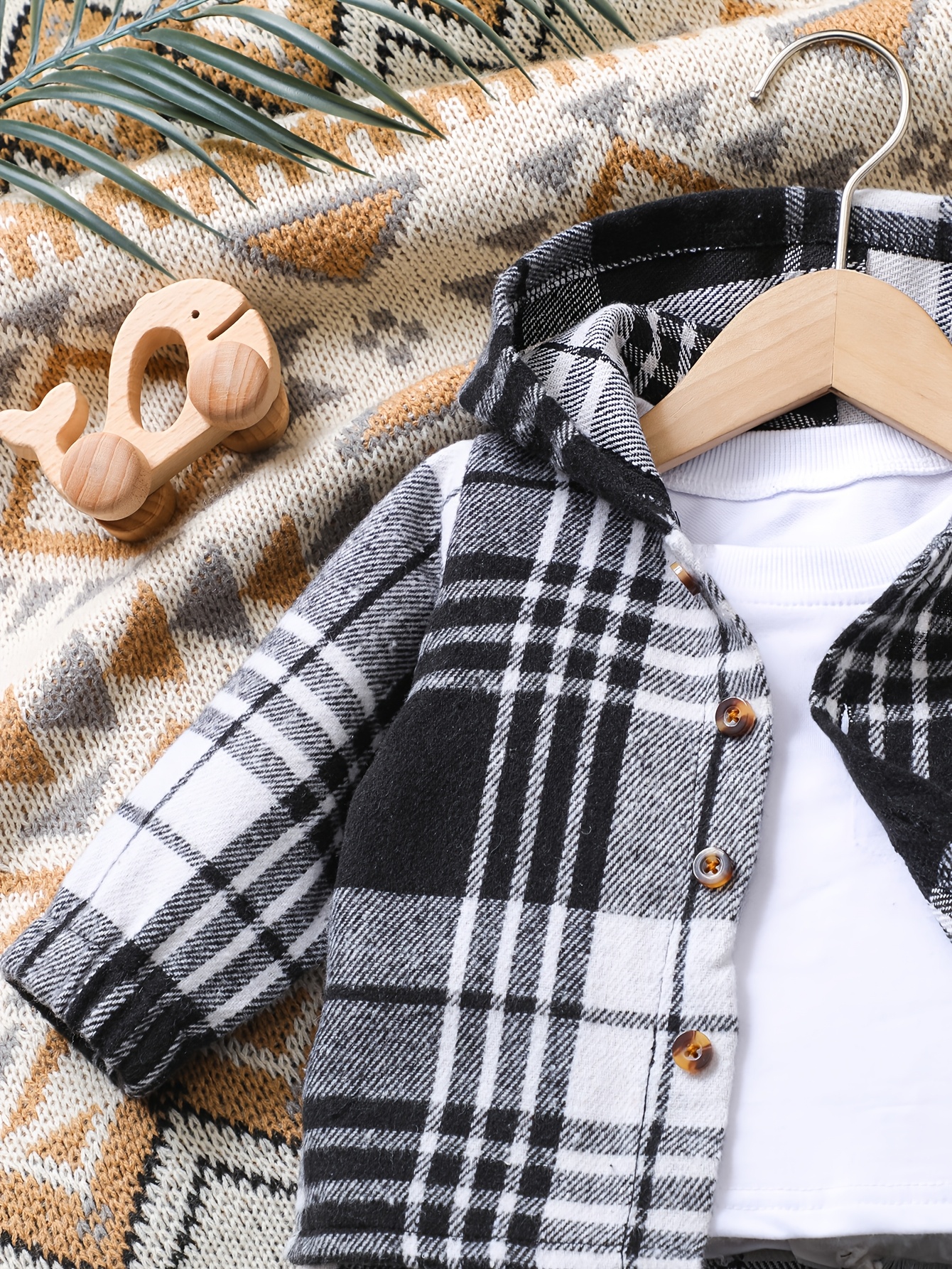امنح طفلك الصغير إطلالة لا تُضاهى تجمع بين الأناقة العصرية والراحة المطلقة مع طقم الكاروهات الرائع هذا. مثالي لأيام اللعب والمغامرات الخارجية في فصلي الربيع والخريف، سيُبقي صغيرك دافئًا ومتحركًا بحرية تامة ليُعبر عن طاقته بلا حدود.