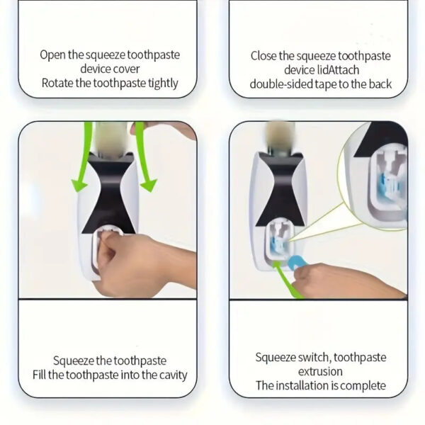 • حل متكامل 2 في 1: احصل على موزع معجون أسنان أوتوماتيكي وحامل لفرش الأسنان في طقم واحد، لتنظيم مثالي وكفاءة لا مثيل لها في مساحة حمامك.