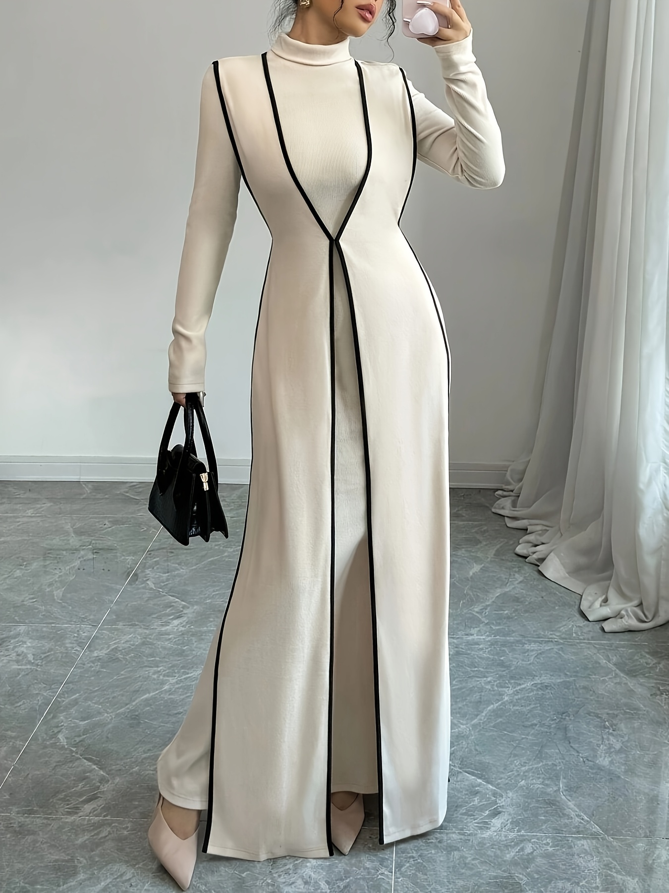 - تصميم الكتل اللونية الجذاب: يضفي لمسة عصرية ومبتكرة على إطلالتك، مما يجعلك محط الأنظار.