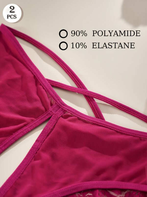 اكتشفي سر الجاذبية والأناقة الخفية مع طقم الثونغ الدانتيل الفاخر المصمم خصيصًا ليمنحكِ شعورًا لا مثيل له بالثقة والراحة. هذا الطقم المكون من قطعتين يجمع بين التصميم العصري والمواد عالية الجودة ليضفي لمسة ساحرة على إطلالتكِ.