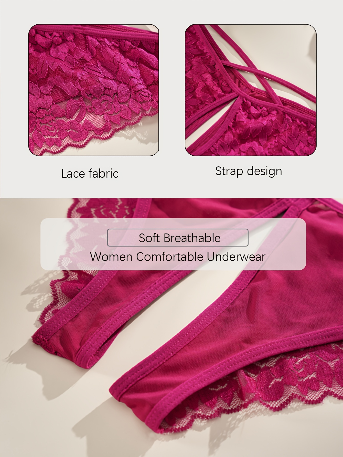 اكتشفي سر الجاذبية والأناقة الخفية مع طقم الثونغ الدانتيل الفاخر المصمم خصيصًا ليمنحكِ شعورًا لا مثيل له بالثقة والراحة. هذا الطقم المكون من قطعتين يجمع بين التصميم العصري والمواد عالية الجودة ليضفي لمسة ساحرة على إطلالتكِ.