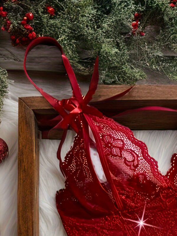 • سروال داخلي بتصميم جي-سترينج وفتحة جريئة: يكمل الإطلالة بجرأة متناهية، بتصميمه المنخفض الخصر والمثلث العصري، مع فتحة تزيد من الإثارة.