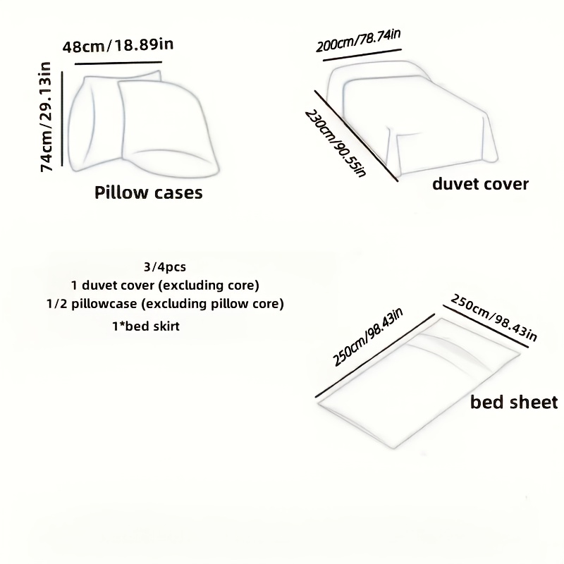 • طقم متكامل لغرفة الأحلام: يأتي كطقم من 3 أو 4 قطع، يتضمن غطاء لحاف (بدون حشوة)، تنورة سرير أنيقة، و 1 أو 2 غطاء وسادة. كل ما تحتاجه لإضفاء لمسة فخمة ومتكاملة على غرفة نومك أو غرفة الضيوف.