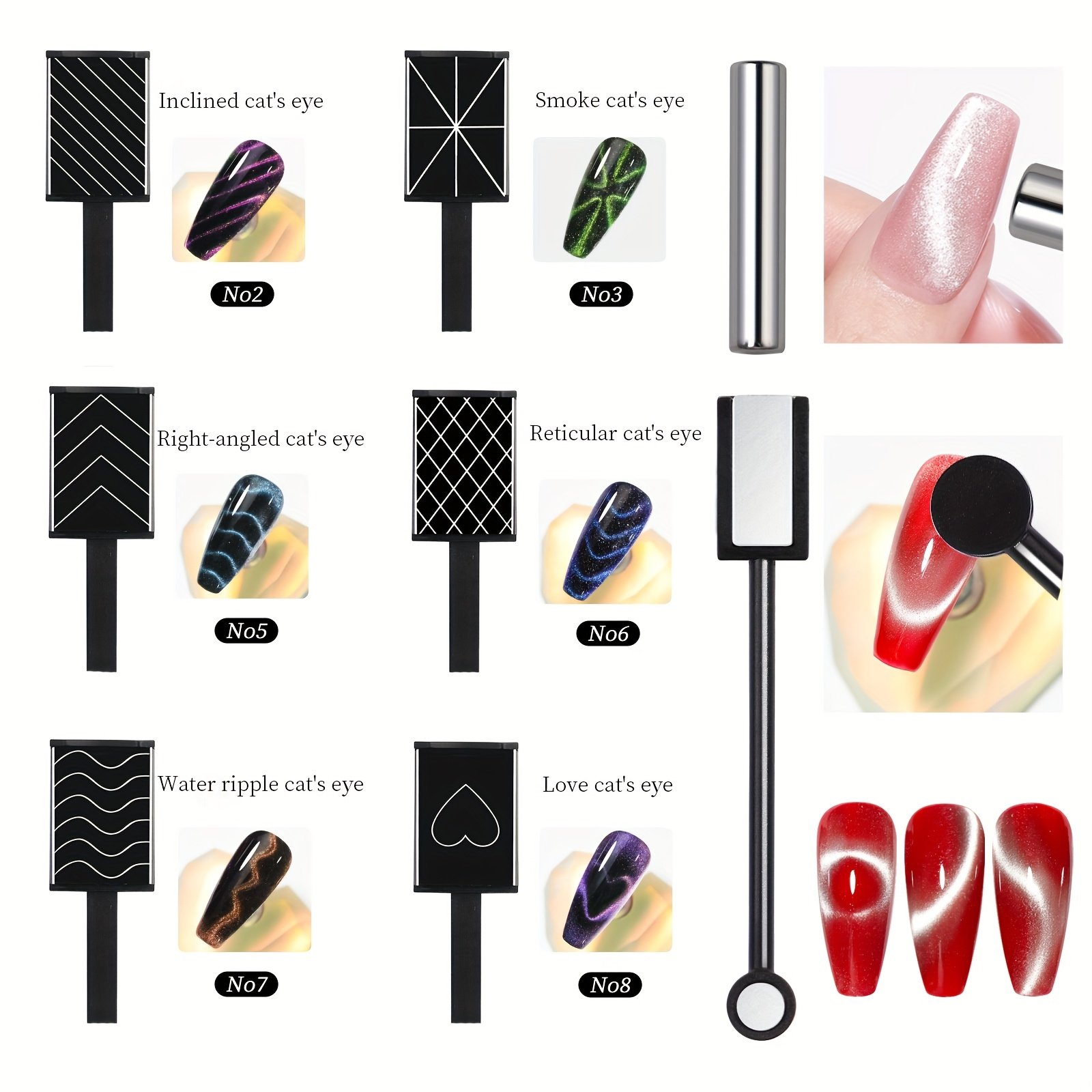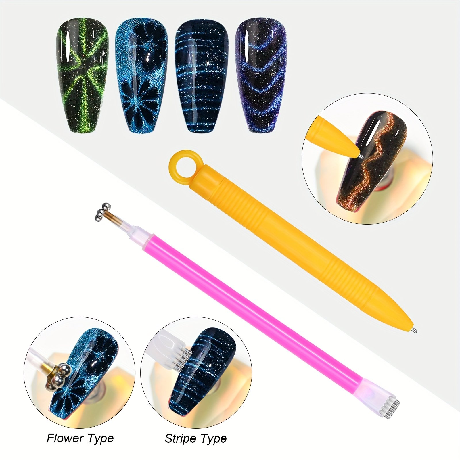 - Comprehensive Set: This set includes 10 magnetic stick pens with multiple designs and tips, giving you complete flexibility to create countless patterns of 3D cat eye effects, from sharp lines to enchanting waves.