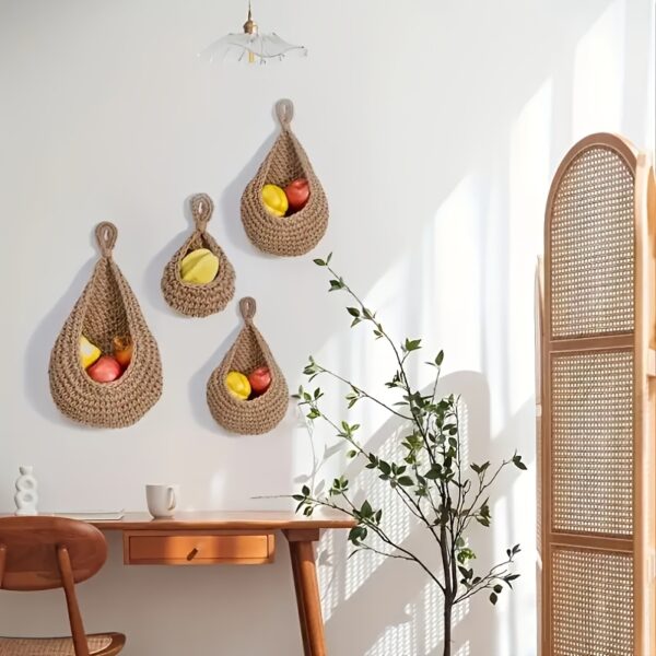 - حلول تخزين عملية ومرنة: مثالية لتخزين الثوم، البصل، الفواكه، الخضروات، أو حتى كمنظم أنيق للمستلزمات الصغيرة في المطبخ، غرفة الطعام، أو المداخل.
