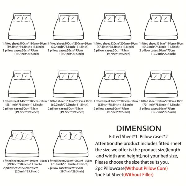 - طقم متكامل: يتكون من 3 قطع: ملاءة سرير مطاطية واحدة (فيتد شيت) وغطاءي وسادة أنيقين، لتجربة نوم متناغمة ومريحة.