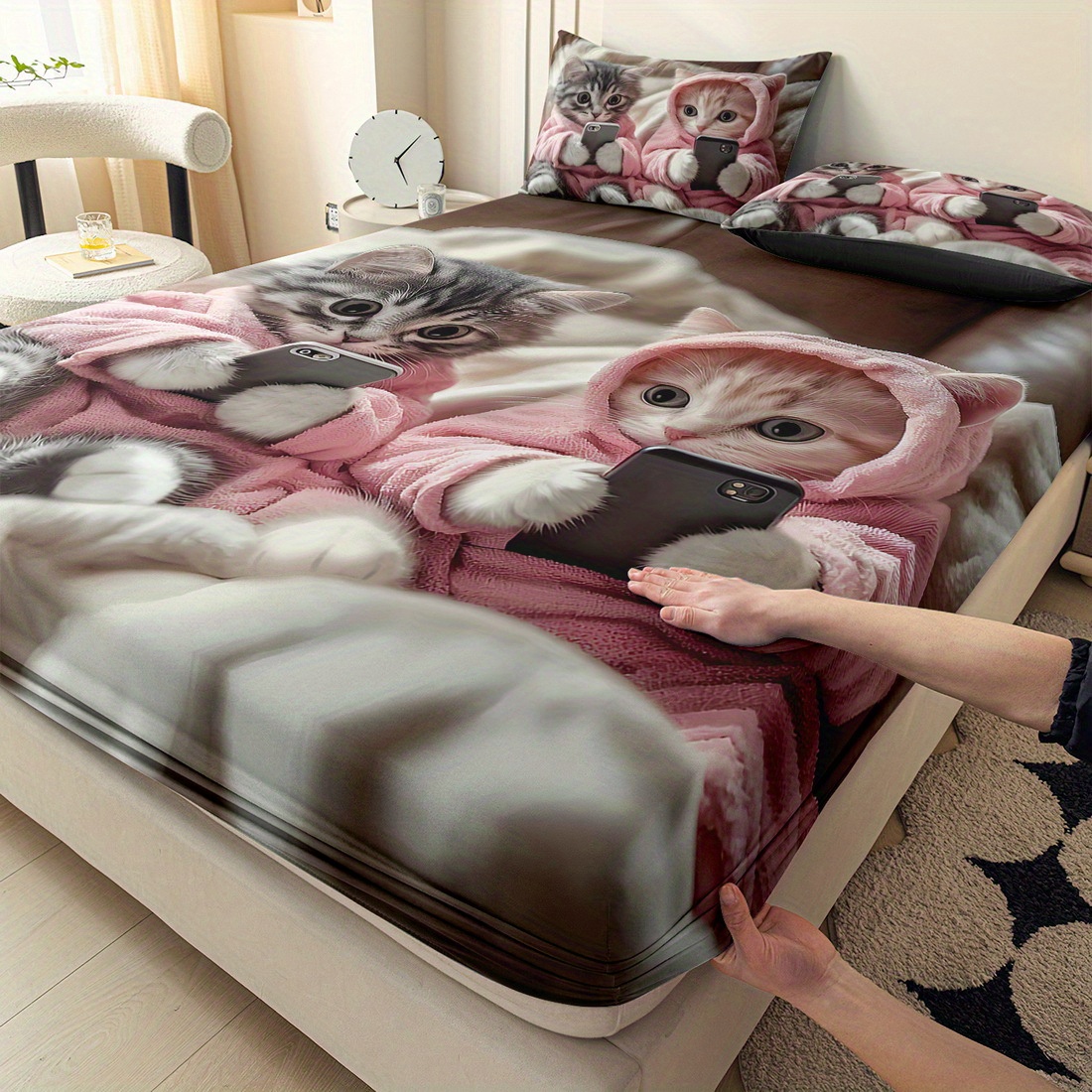 - تصميم جذاب ومرح: يتميز بنقوش قطط لطيفة برسومات كرتونية تضفي لمسة من البهجة والمرح على غرفة نومك، وتناسب جميع الأذواق.