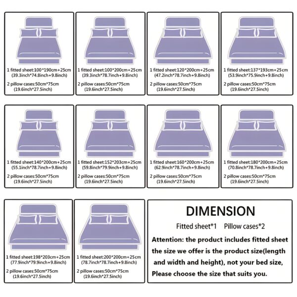 - طقم متكامل: يتضمن طقمنا الفاخر شرشفًا مطاطيًا واحدًا ووسادتين متناسقتين، لتجربة نوم متناغمة وكاملة الأناقة.