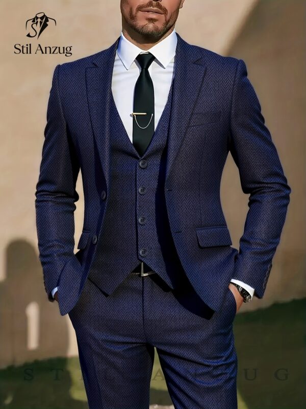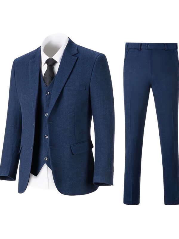 - طقم متكامل ثلاثي القطع: احصل على إطلالة متناسقة ومثالية مع سترة أنيقة، وصديرية كلاسيكية، وبنطلون مصمم خصيصًا ليمنحك الراحة والتميز، لتكون جاهزًا لأي مناسبة.