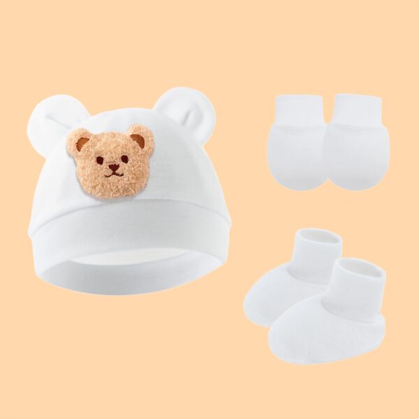 احتفل بقدوم ملاكك الصغير بأروع طريقة! نقدم لك مجموعة هدية المولود الجديد المكونة من 3 قطع، المصممة خصيصًا لتغمر طفلك بالدفء والحنان والأناقة. كل قطعة في هذه المجموعة، من القبعة اللطيفة إلى القفازات والأحذية المريحة، مصممة بعناية فائقة لتوفر أقصى درجات الراحة لصغيرك منذ أيامه الأولى. بفضل تصميمها الكرتوني الجذاب على شكل دب، ستضفي هذه المجموعة لمسة من البهجة والمرح على إطلالة طفلك، لتكون الهدية المثالية التي تُعبّر عن كل مشاعر الحب والرعاية.