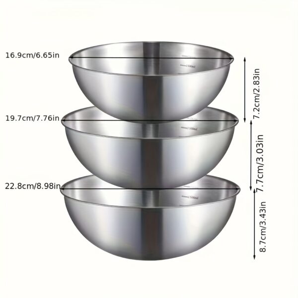 - تنوع لا حدود له: يتضمن الطقم ثلاثة أحجام عملية ومختلفة تلبي جميع احتياجاتك في المطبخ، من خلط كميات صغيرة من التوابل إلى تحضير عجين الخبز الكبير. مثالية للعجن، الخلط، التحضير، التقديم الأنيق، وحتى التخزين.