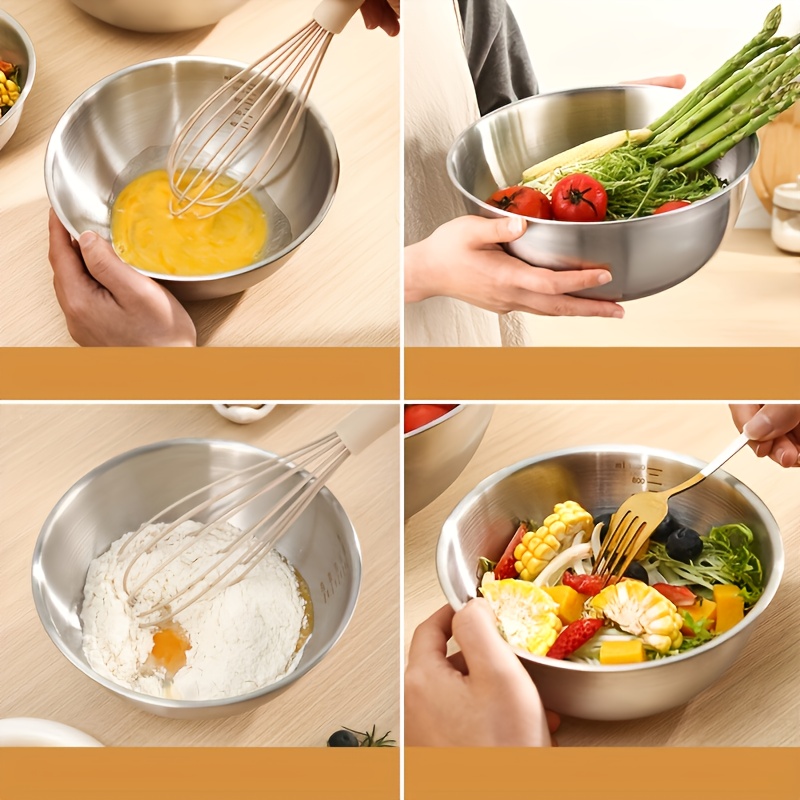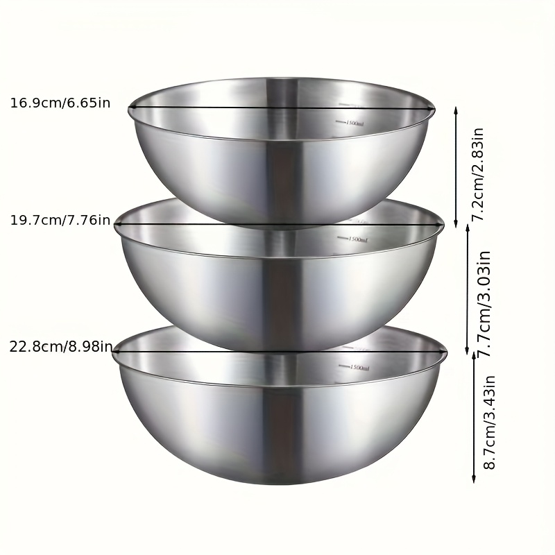 - تنوع لا حدود له: يتضمن الطقم ثلاثة أحجام عملية ومختلفة تلبي جميع احتياجاتك في المطبخ، من خلط كميات صغيرة من التوابل إلى تحضير عجين الخبز الكبير. مثالية للعجن، الخلط، التحضير، التقديم الأنيق، وحتى التخزين.