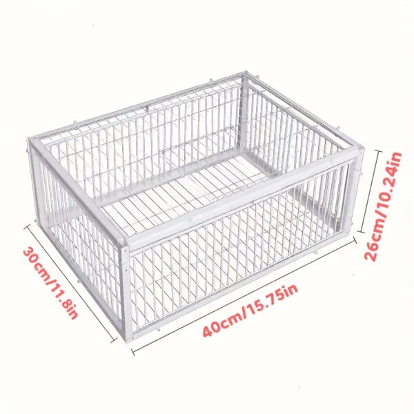 • متانة فائقة لمقاومة الظروف القاسية: بفضل بنائه من الألياف المعدنية السميكة، تم تصميم هذا القفص ليتحمل أقسى الظروف البيئية والاستخدام المتكرر، مما يوفر لك حلاً يدوم طويلاً ويستحق كل بنس تستثمره فيه.