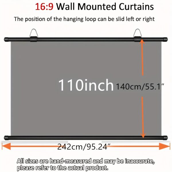 - أحجام متنوعة تناسب احتياجاتك: متوفرة بأحجام 182.88 سم (72 بوصة)، 233.68 سم (92 بوصة)، و 279.4 سم (110 بوصة) لتختار ما يناسب مساحتك ومتطلبات عرضك.