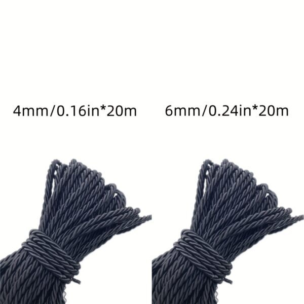 - قياسات مثالية لاحتياجاتك: متوفر بطول 20 مترًا (65.6 قدمًا) وبقطر يتراوح بين 4-6 مم، مما يوفر لك التنوع والمرونة اللازمة لأي مشروع، كبيرًا كان أم صغيرًا.