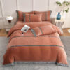 • طقم متكامل 4 قطع: يأتي هذا الطقم ليلبي جميع احتياجات سريرك، حيث يتضمن غطاء لحاف واحد، ملاءة سرير واحدة، و2 كيس وسادة، مما يضمن لك مظهرًا متناسقًا وأنيقًا لغرفتك. (ملاحظة: حشوة اللحاف غير متضمنة).