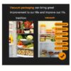 • نضارة تدوم أطول: تعمل تقنية التفريغ على إزالة الهواء من حول طعامك، مما يبطئ عملية الأكسدة والفساد بشكل كبير ويحافظ على طعامه طازجاً، لذيذاً ومغذياً لأيام أو حتى أسابيع أطول.