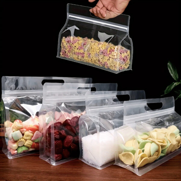 هل سئمت من الطعام الذي يفقد نضارته بسرعة؟ هل تبحث عن حل عملي وفعال لتخزين مختلف الأطعمة والحفاظ عليها طازجة لفترة أطول؟ نقدم لك الحل الأمثل! مجموعة أكياس التخزين المبتكرة بسحاب، المصممة لتلبي جميع احتياجاتك في المطبخ وخارجه. هذه الأكياس المتينة والشفافة هي رفيقك المثالي لتنظيم حياتك والحفاظ على كل شيء طازجًا ومنظمًا.