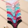 - تصميم أنيق وجذاب: تتميز بحواف دانتيل رائعة بتصاميم سادة وزهرية، مع تفاصيل فيونكة ساحرة وقصة V-String منخفضة الخصر تبرز أنوثتك بأناقة وجاذبية لا تقاوم.