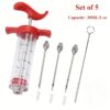 • مجموعة متكاملة لراحة بالك: تأتي المجموعة بخمس قطع عملية تشمل الحقن وإبراً متعددة الأحجام ومجموعة أدوات تنظيف خاصة، مما يضمن لك تجربة تتبيل سهلة وصحية من البداية حتى التنظيف.