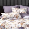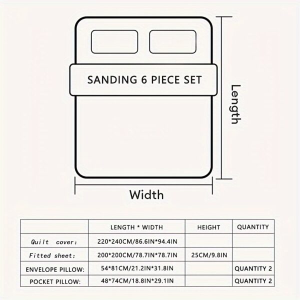 • مجموعة متكاملة من ٦ قطع: تحتوي على شرشف سرير مطاطي محكم، غطاء لحاف أنيق بسحاب، وأربعة أغطية وسائد متناسقة لتجديد سريرك بالكامل وبسهولة.