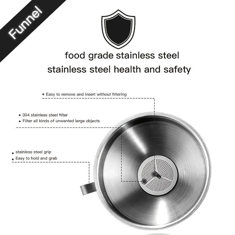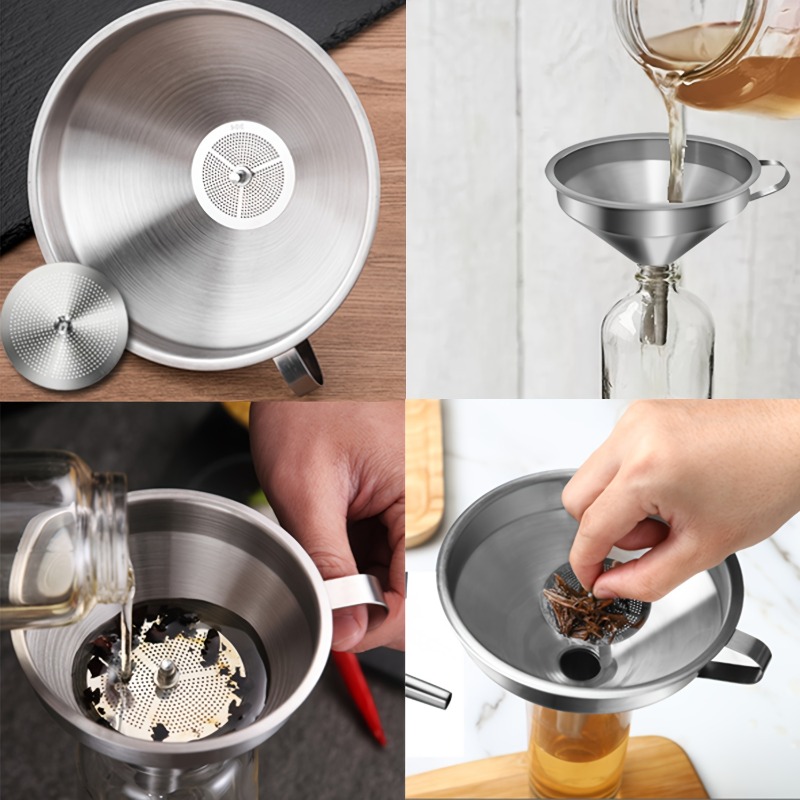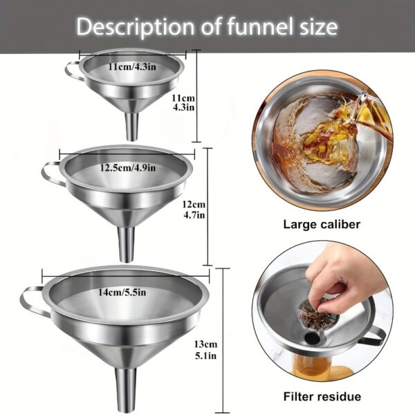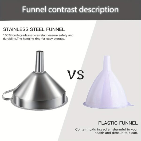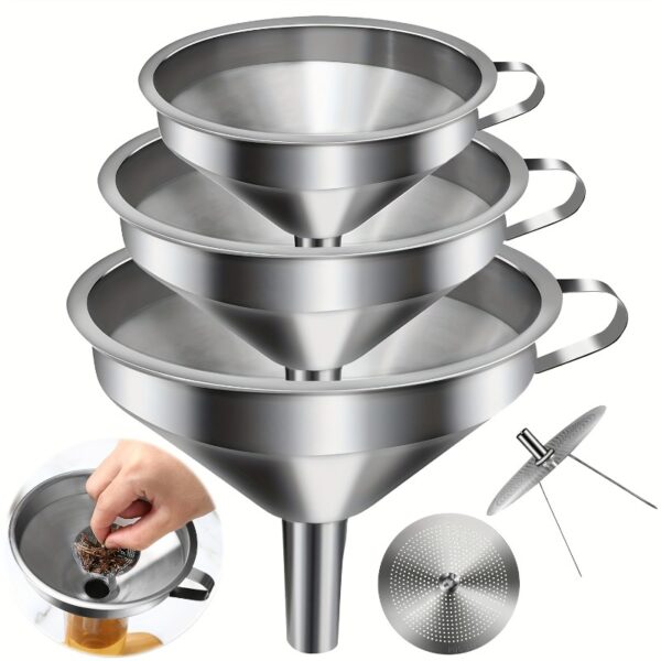 • تنوع ومرونة لا مثيل لهما: يضم الطقم 6 أقماع بأحجام مختلفة لتناسب جميع احتياجاتك، بالإضافة إلى 3 فلاتر قابلة للإزالة تضمن لك سكب السوائل النقية والخالية من أي شوائب، سواء للزيوت، العصائر، القهوة، أو الصلصات.