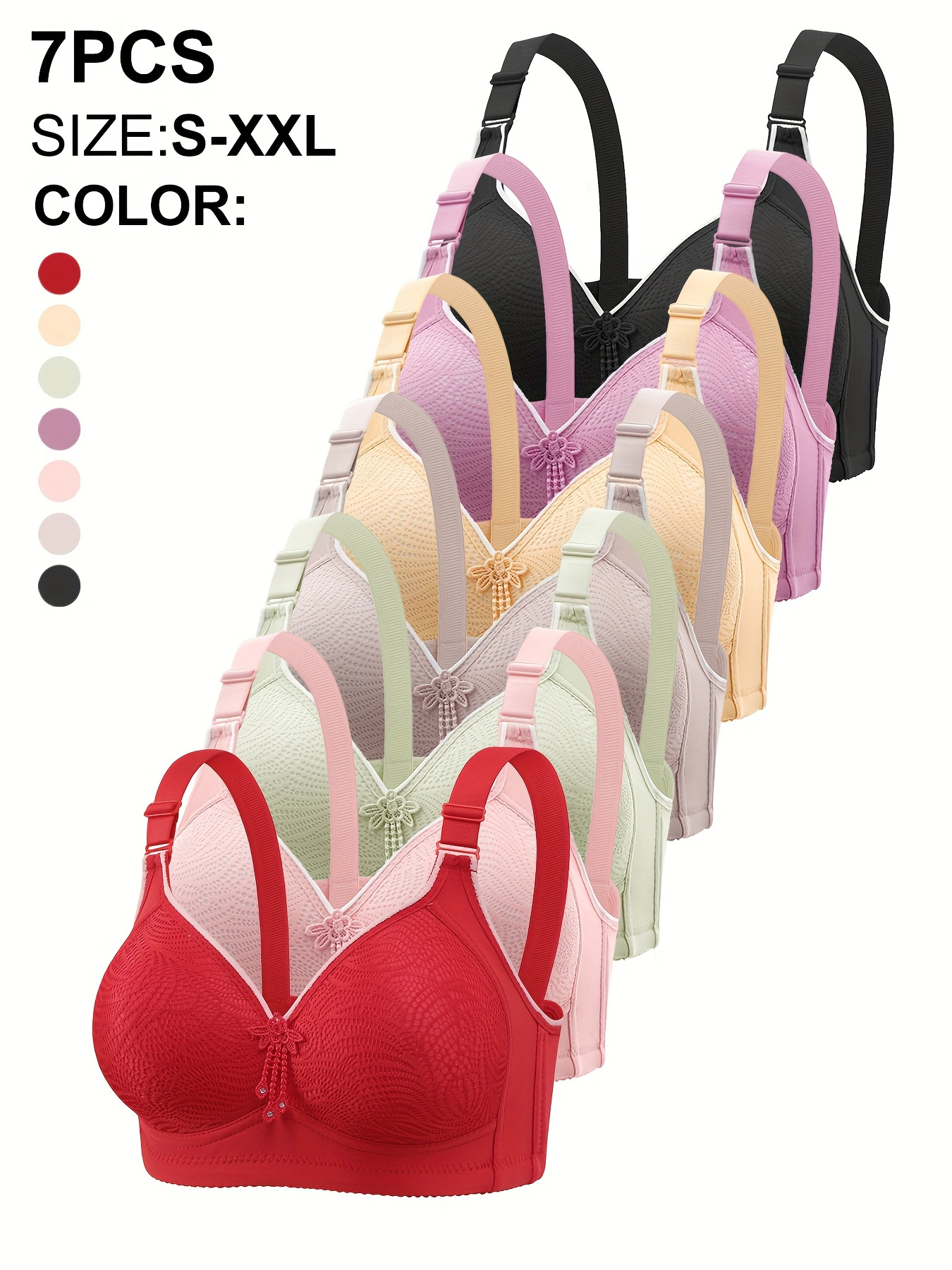 - 7 قطع متنوعة: استمتعي بمجموعة كاملة من 7 حمالات صدر بألوان باستيل ناعمة وجذابة (كالأسود، الأحمر، الوردي، الأخضر النعناعي، البنفسجي، والبني المائل للوردي) لتناسب كل إطلالاتك ومزاجك طوال الأسبوع وتوفر لكِ خيارات لا حصر لها.