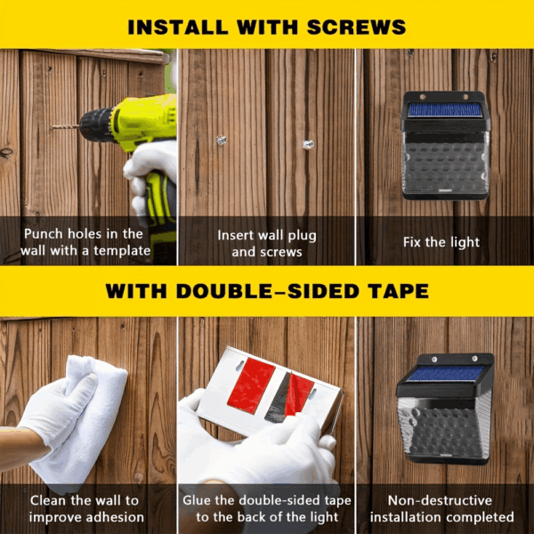 - سهولة تركيب فائقة: وداعًا للأسلاك المعقدة! صُممت هذه المصابيح لتركيب سهل وسريع على الجدران، مما يتيح لك تحويل أي مساحة خارجية إلى منطقة مضاءة بشكل جميل في دقائق معدودة.