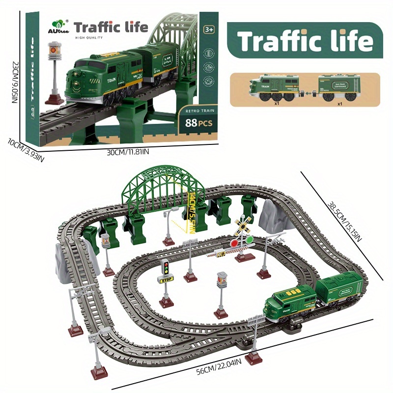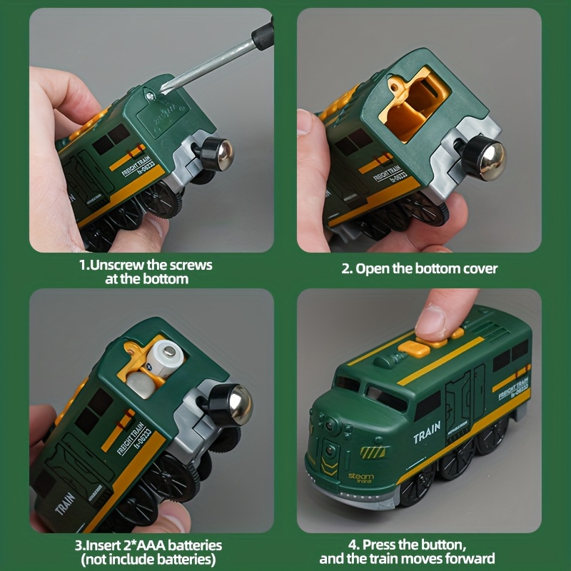 • تشغيل سهل ومريح: يعمل القطار بالبطاريات لتوفير حركة سلسة وثابتة على القضبان، مما يضمن سهولة الاستخدام والاستمتاع لساعات طويلة. (ملاحظة: البطاريات غير متضمنة).