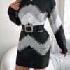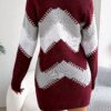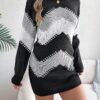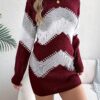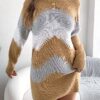 فستان سترة نسائي محبوك: أناقة عصرية بقصة محددة وتصميم مخطط بألوان متداخلة