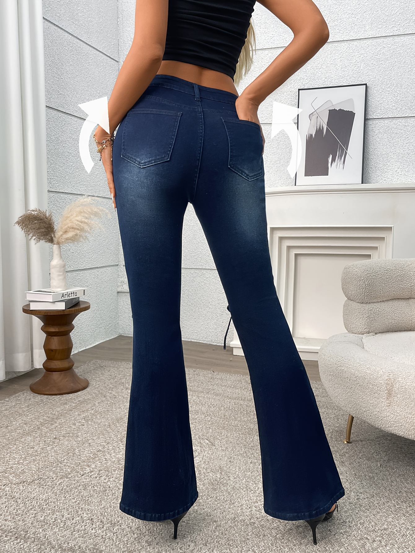 ارتقي بإطلالتك اليومية إلى مستوى جديد من الأناقة والراحة مع بنطلون الجينز النسائي الفلير بتصميمه الفريد. يجمع هذا البنطلون بين الصيحات العصرية والكلاسيكية، ليمنحكِ مظهراً جذاباً ومتميزاً في كل مرة ترتدينه فيها.