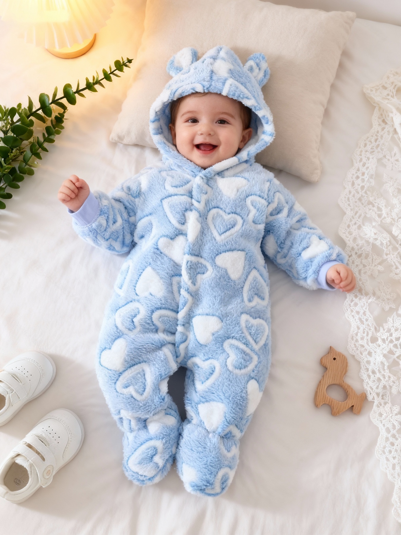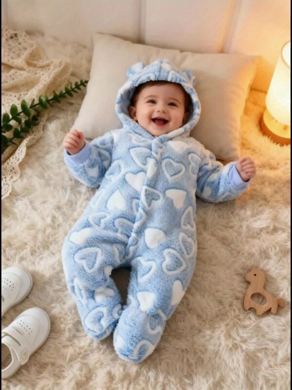 دفء وأناقة لا تضاهى لطفلك: بدلة الشتاء بقلب أزرق ساحر!