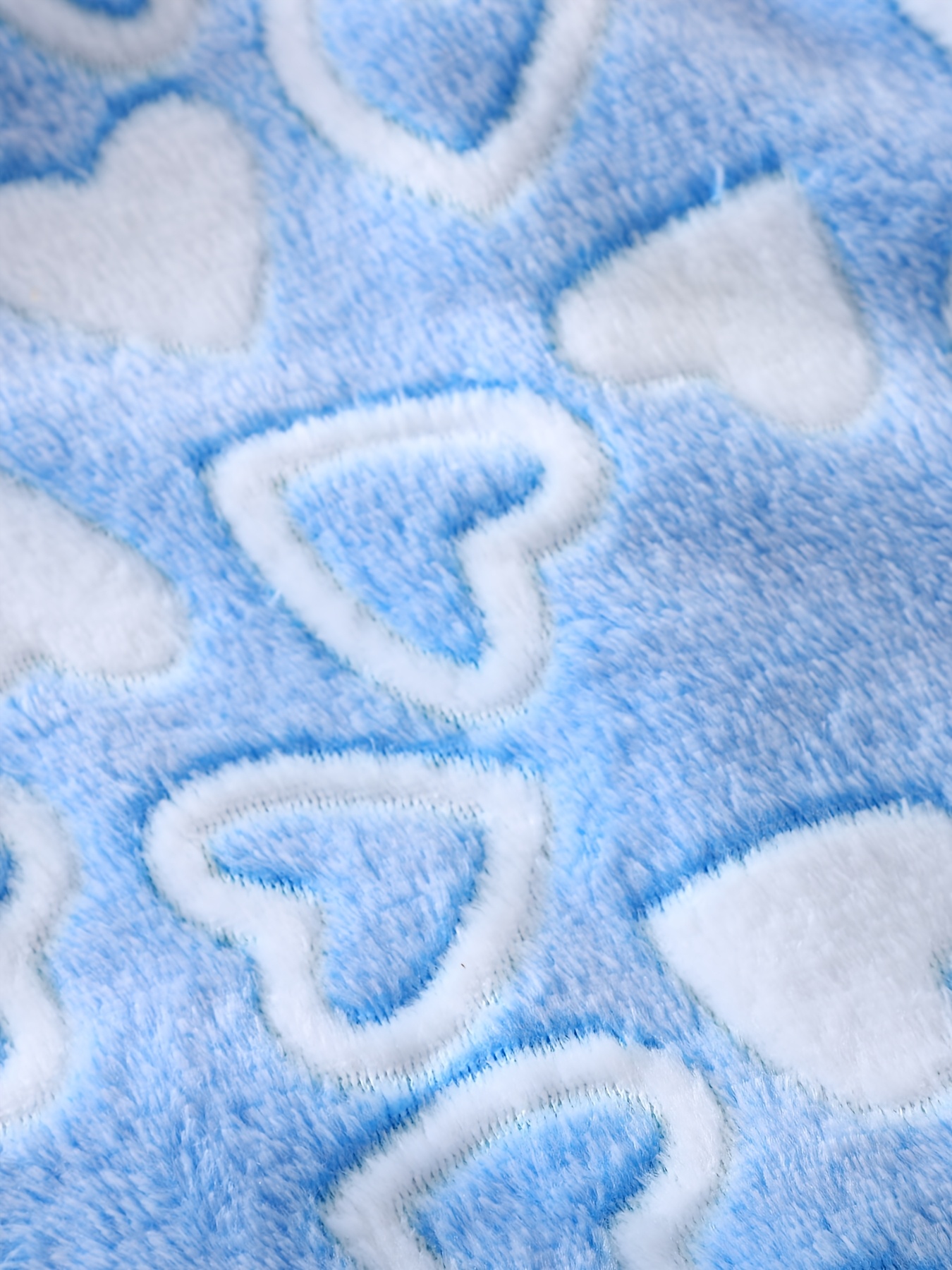• تصميم عملي وأنيق: تتميز بقصة عصرية مع غطاء رأس يوفر حماية إضافية، وتزدان بنقوش قلوب زرقاء ساحرة وتفاصيل كرتونية وهندسية تضفي لمسة من البهجة والجاذبية على إطلالة طفلك.