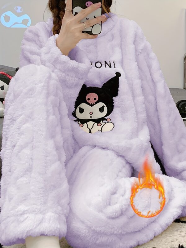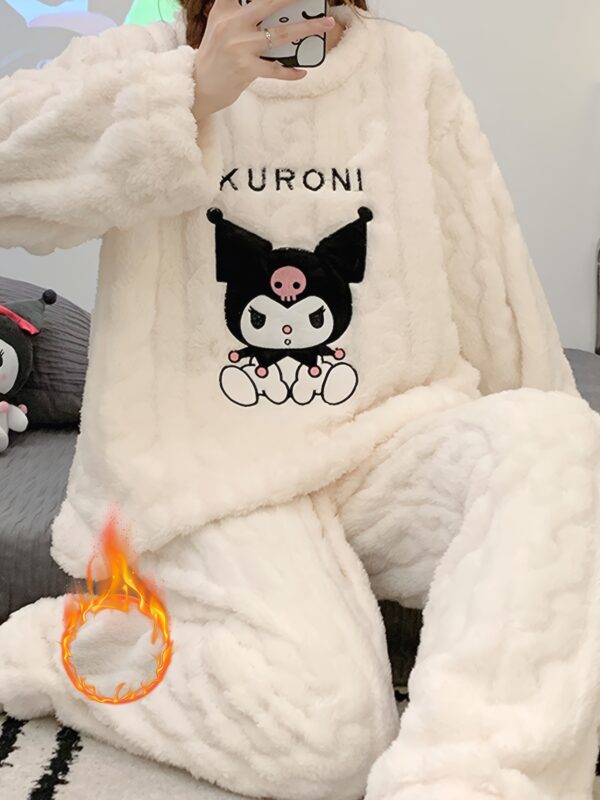 استعدي لاستقبال ليالي الشتاء الباردة بأقصى درجات الدفء والراحة والأناقة! نقدم لكِ بيجامة نسائية عصرية ودافئة، مصممة خصيصًا لتمنحكِ شعورًا بالاسترخاء المطلق في منزلكِ. هذه البيجامة ليست مجرد ملابس للنوم، بل هي تجسيد للراحة والفخامة بلمسة ساحرة من شخصية كورومي المحبوبة من سانريو، لتجعل كل لحظة في منزلكِ مميزة ودافئة.