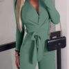 - تفاصيل جذابة: يأتي مع حزام أنيق يبرز جمال قوامك ويضيف لمسة راقية، بالإضافة إلى ياقة على شكل حرف V تضفي جاذبية أنثوية لافتة.