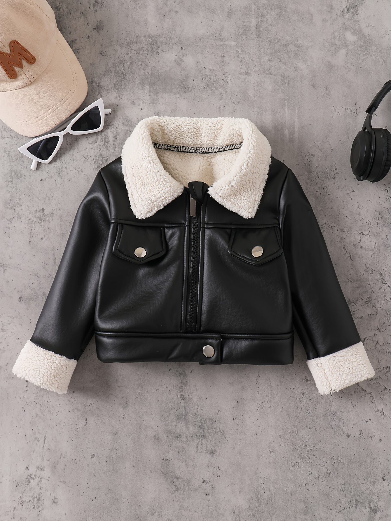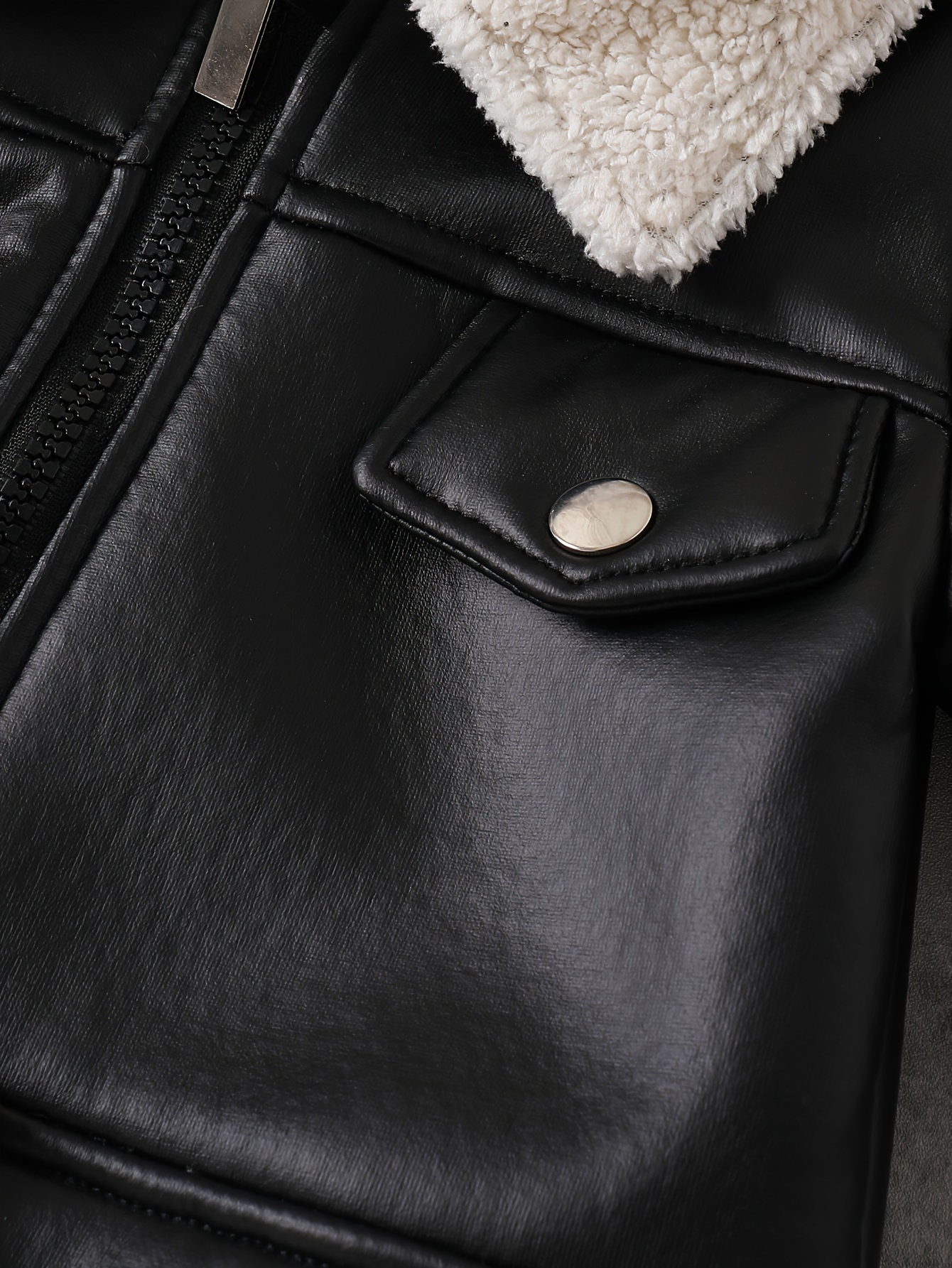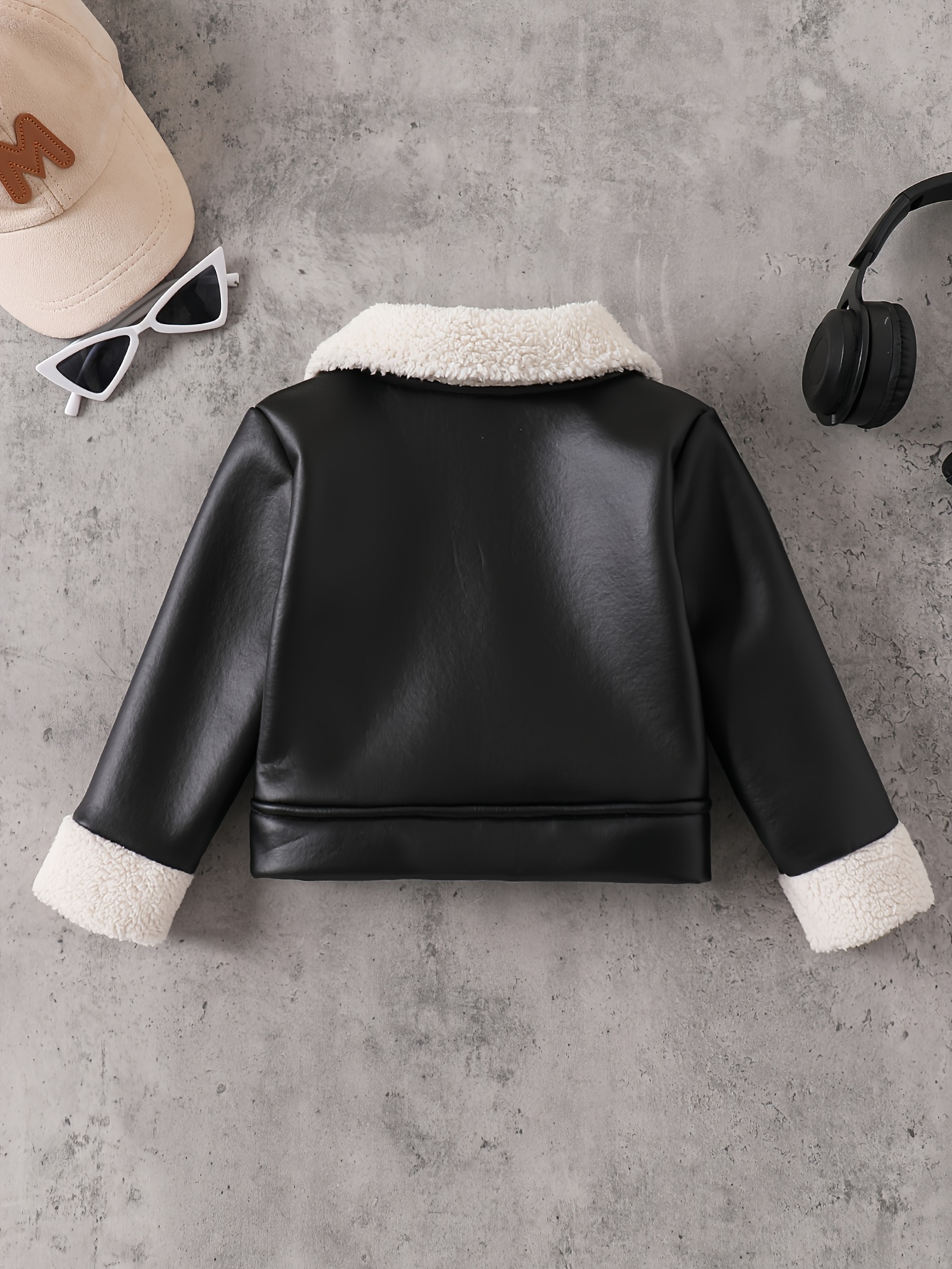 - أناقة كلاسيكية فاخرة: يتميز بتصميم ياقة كلاسيكية (لابل) ولون أسود أنيق يمنح صغيرتكِ إطلالة راقية وعصرية، تتناسب مع مختلف المناسبات الكاجوال والأكثر رسمية.